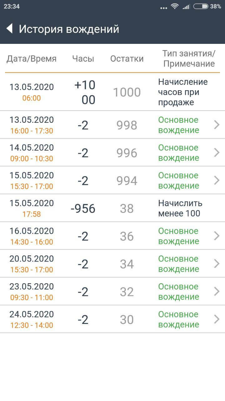✅ Учет часов вождения и теоретических занятий